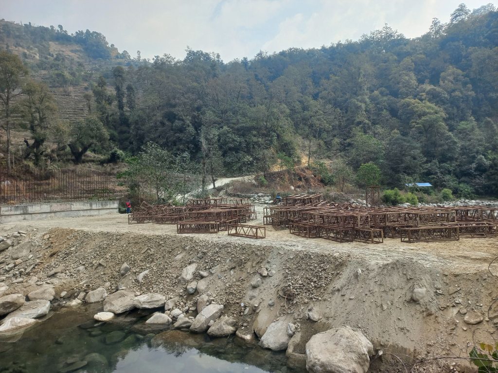पर्वतको मोदी गाउँपालिका–१ भुकताङ्ले र कास्कीको अन्नपूर्ण गाउँपालिका–८ रामदुवाली जोड्ने यो पुलको काम १० प्रतिशत पनि भएको छैन ।