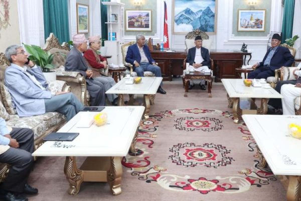 काठमाडौं । सिंहदरबारस्थित प्रधानमन्त्री तथा मन्त्रिपरिषद् कार्यालयमा अहिले तीन दलका शीर्ष नेताहरूबीच छलफल चलिरहेको छ । छलफलमा प्रधानमन्त्री केपी शर्मा…