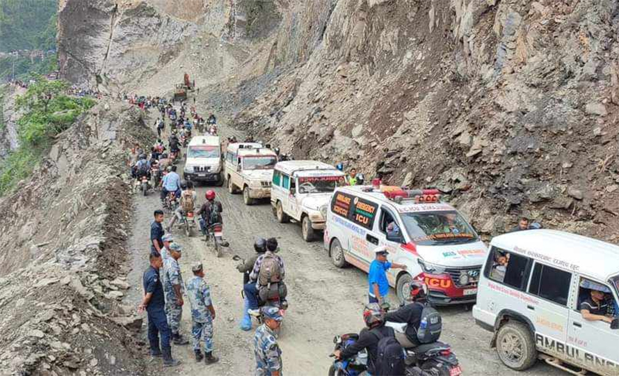 ‘हाल एकतर्फी सञ्चालनमा रहेको सडकलाई पहिरो पूर्ण रूपमा हटाई सडक दुईतर्फी संचालनमा ल्याउनको लागि जिल्ला प्रशासन कार्यालय चितवनको निर्णय अनुसार आज दिउँसो १ बजेदेखि ३ बजेसम्म सवारीसाधनहरू रोकी पहिरो हटाउने कार्य निरन्तर सुचारू भैरहेको छ’ कार्यालयले भनेको छ, ‘माथिबाट ढुंगा खस्ने क्रम कायमै रहेकोले अन्दाजी थप १ देखि१स्३० घण्टा लाने अनुमान गरिएको छ। उक्त अवधिभर रोकिने सवारीसाधनहरू आफ्नो लेन अनुशासनमा रहनुहुन समेत अनुरोध गरिन्छ।’