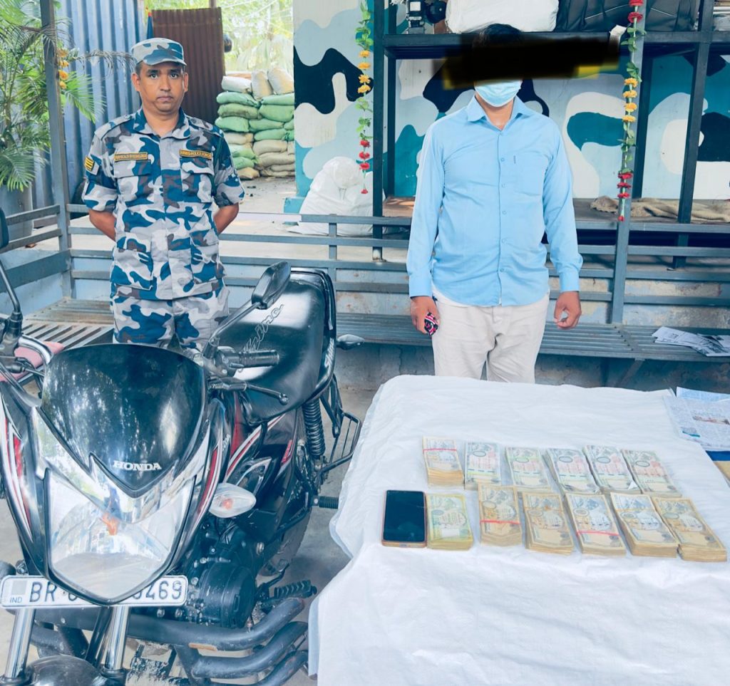 पर्सा, असोज ७ । भारतबाट नेपालतर्फ ल्याउँदै गरिएको स्रोत नखुलेको ठूलो परिमाणको नगद रकमसहित सशस्त्र प्रहरीले पर्सामा एक जनालाई नियन्त्रणमा लिएको छ।मंगलबार दिउँसो करिब १:५० बजेतिर वीरगञ्ज महानगरपालिका–१६, भन्सार मेनगेट क्षेत्रमा चेकजाँच गर्ने क्रममा BR 05 BF 0469 नम्बरको मोटरसाइकल रोक्दा उक्त रकम बरामद भएको हो।