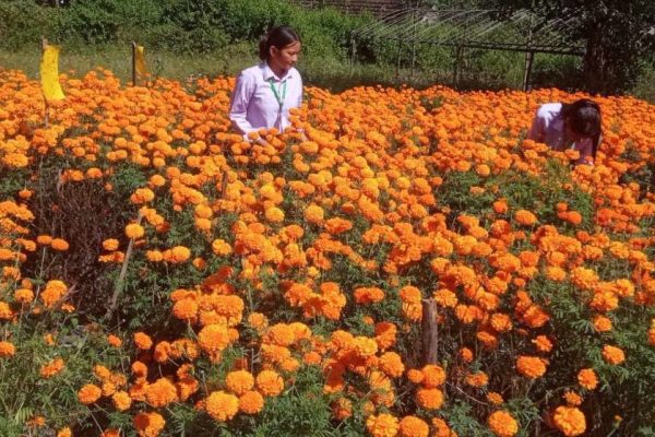 तिहारका लागि विद्यालयमै सयपत्री फूल उत्पादन