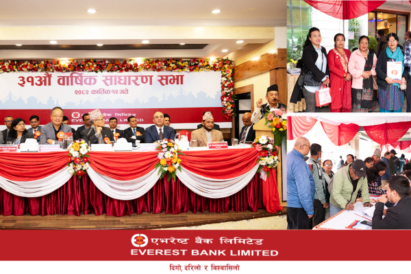 काठमाडौं, १३ कात्तिक । एभरेष्ट बैंक लिमिटेडको ३१औं वार्षिक साधारणसभा सम्पन्न भएको छ । सभाले लेखापरीक्षकको प्रतिवेदनसहित आर्थिक वर्ष २०८१/८२…
