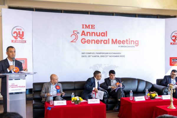 काठमाडौँ । आइएमई लिमिटेडले आफ्नो २५ औँ वार्षिक साधारण सभा मंगलबार काठमाडौँमा सम्पन्न गरेको छ। कम्पनीका संस्थापक तथा अध्यक्ष हेमराज…