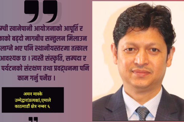 काठमाडौं । काठमाडौं प्रतिनिधि सभा निर्वाचन क्षेत्र नम्बर ६ बाट नेकपा (एमाले)का उम्मेदवार अमन मास्केले जनप्रतिनिधिको रूपमा आफूले निर्वाह गर्ने भूमिका…